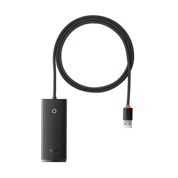 هاب 4 پورت USB 3.0 باسئوس مدل BS-OH013 WKQX030101 محصولی از کمپانی Baseus با طراحی بسیار ساده ولی کاربردی است که ورودی آن با کابلی با رویه کنفی بافته شده و بسیار با دوام است که می تواند برای توسعه پورت های USB 3.0 بر روی انواع کامپیوتر های شخصی و لپ تاپ ها مورد استفاده قرار گیرد. می توان از طریق پورت های این هاب انوع دیوایس ها شامل موس و کیبورد، هارد و … را به کامپیوتر و لپ تاپ متصل کرد که در این صورت سرعت انتقال اطلاعات به 5Gbps می رسد.