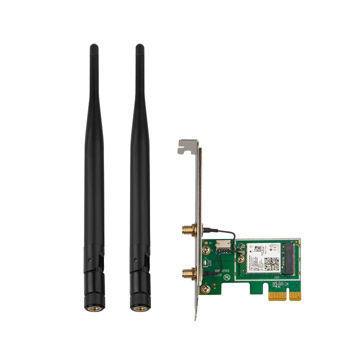 کارت شبکه E30 با 2 آنتن دو باند 5dBi قابل جدا شدن خارجی می توانند زاویه انتقال سیگنال را به صورت انعطاف پذیر تنظیم کنند که سیگنال های پایداری را از فواصل دور فراهم می کند.